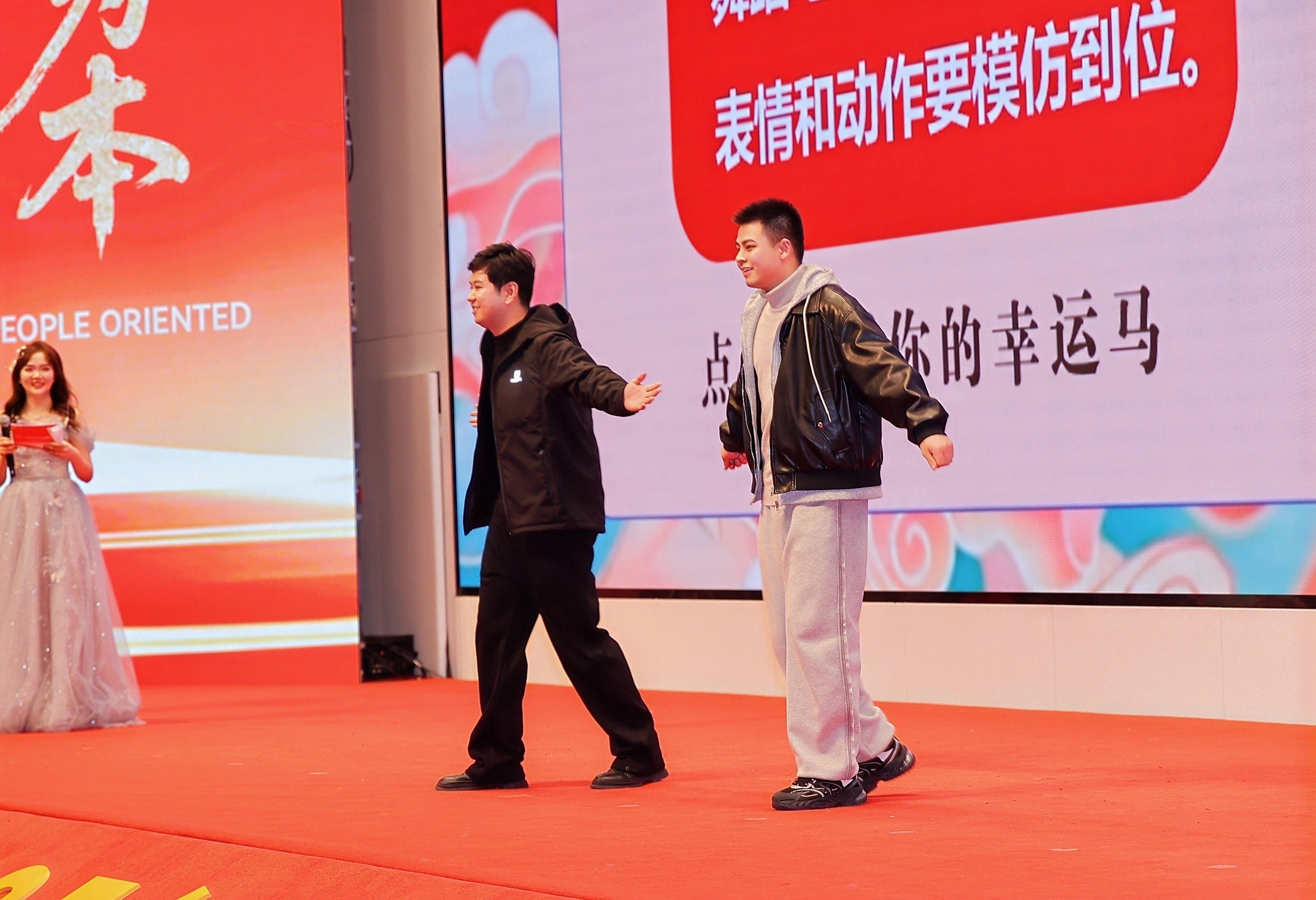 穿插于颁奖与节目之间的互动环节创意迭出、笑语不断。今年新增的大屏互动游戏——“赛马摇一摇”与“疯狂数钱”,以趣味互动点燃全场热情;舞台上的“词语猜猜乐”“欢乐模仿秀”等游戏,更让观众踊跃参与、笑声连连。抽奖环节持续送出手机、平板、洗地机等丰厚礼品,并紧跟潮流设置多轮“泡泡玛特惊喜盲盒”随机掉落,惊喜不断。活动最后,高文宝总抽取现金红包特等奖,将现场氛围推向最高潮。整场活动始终洋溢着欢乐、温暖与活力的气息,充分展现了SOE大家庭的凝聚与热情。