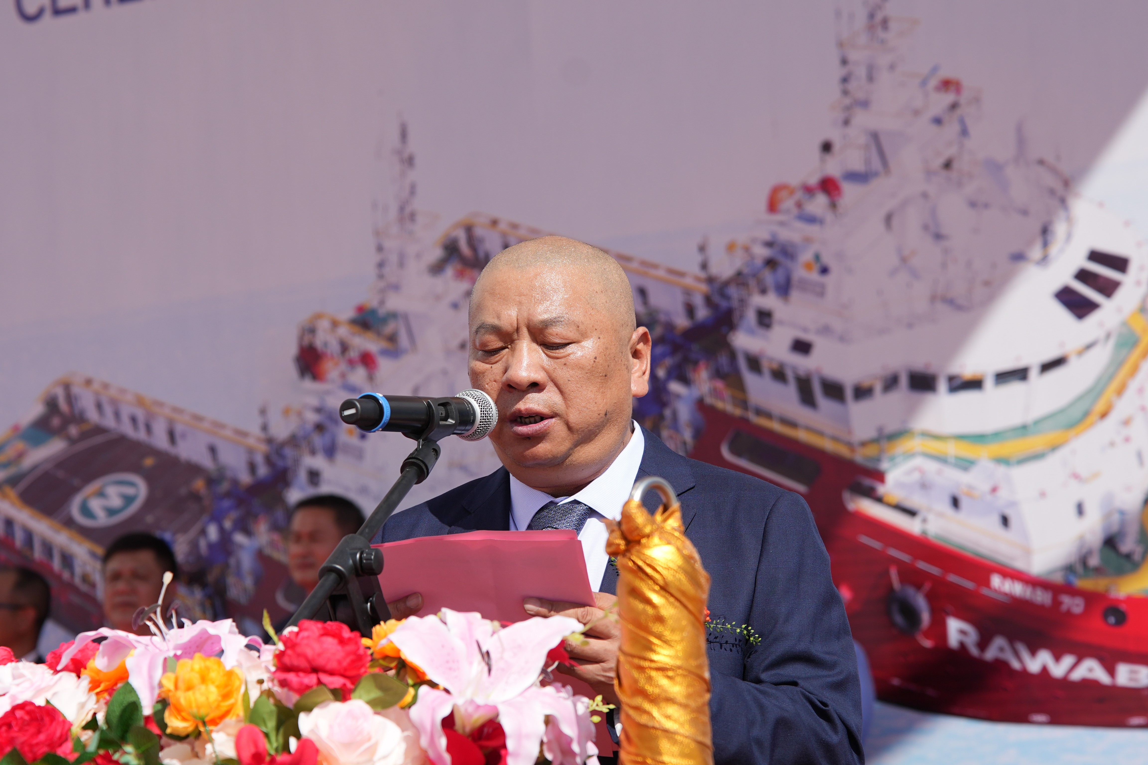 教母刘佳女士在致辞中表示:“我们见证了Vallianz与南通中集太平洋在项目全程中的卓越努力与技术突破,衷心祝愿‘RAWABI 64’与‘RAWABI 70’未来航行一帆风顺、安全高效。期待与各方继续携手合作,共同迎接新机遇、共创辉煌。”