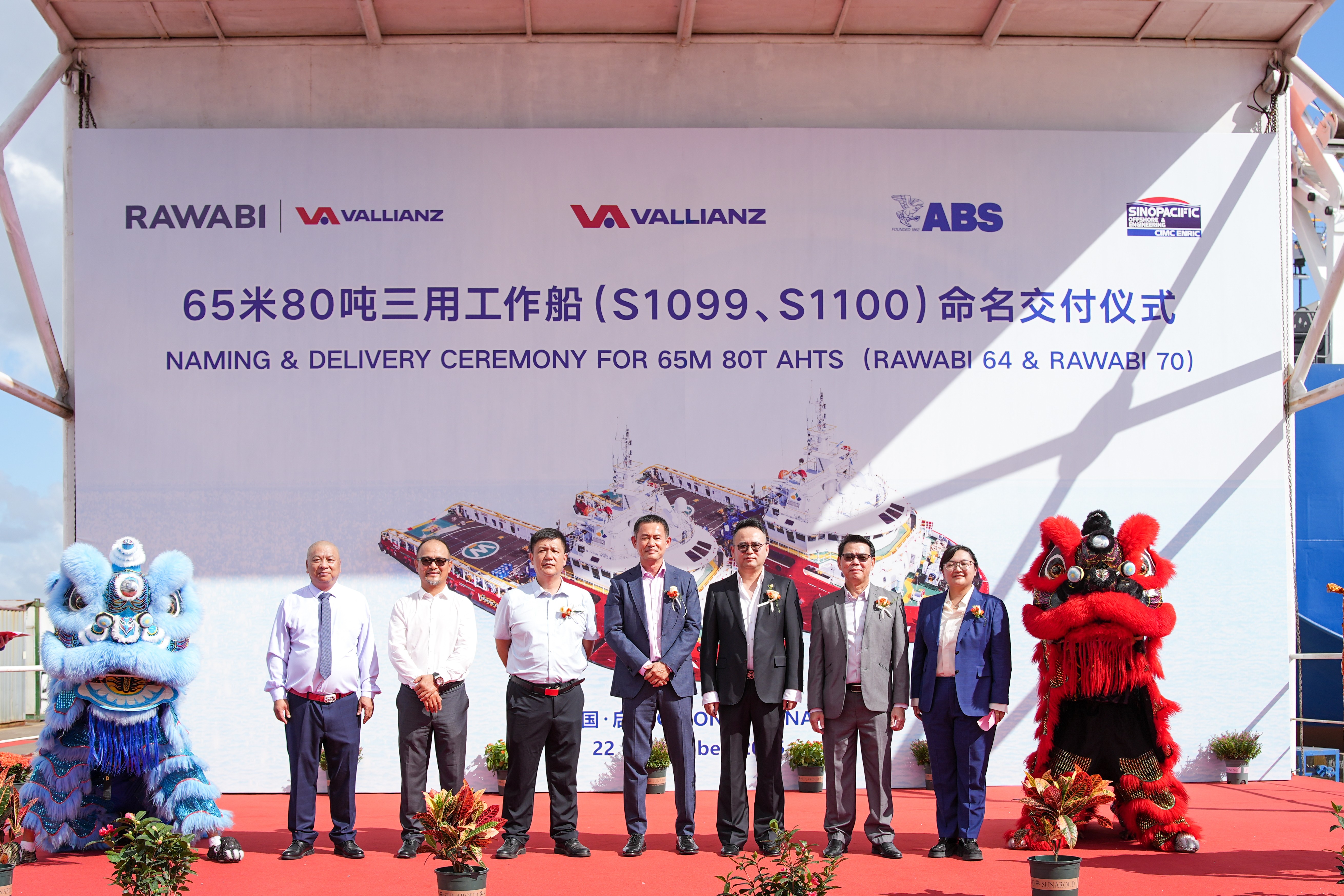 Vallianz执行总裁兼CEO Ling Yong Wah在致辞中表示:“RAWABI 64与RAWABI 70的交付,是各方远见、决心与专业协作的重要成果。这两艘船舶兼具高性能与可持续性,将显著增强我们的船队实力与服务能力。我们衷心感谢中集太平洋海工、Quantum等合作伙伴的卓越贡献与持续信任。”