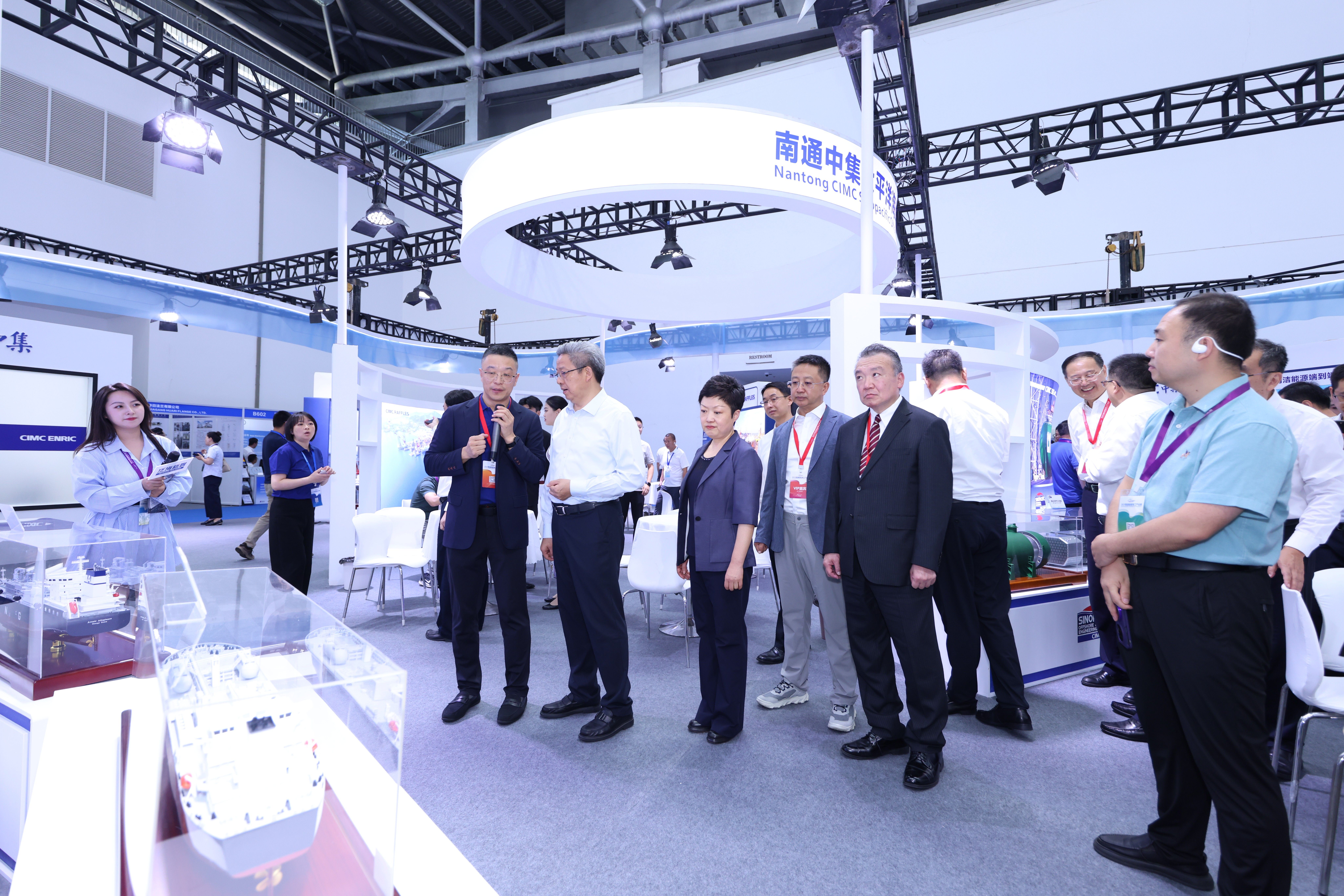 After the opening ceremony, Wu Xinming, Secretary of the Nantong Municipal Party Committee, and Zhang Tong, Deputy Secretary of the Municipal Party Committee and Mayor, toured the exhibition. Su Fei, the person in charge of the CIMC SOE booth, accompanied them and reported on the company's business, highlighting the 40,000 cubic meter LPG/liquid ammonia carrier. Mr. Su stated that this vessel represents a new generation of MGC carriers, marking a new breakthrough for CIMC SOE in the expansion of liquefied gas vessel types. The incorporated Type A tank technology also fills a gap in the company's product range for liquefied gas carriers with this tank type. He emphasized that with the increasing application of liquid ammonia in energy, agriculture, and other fields, market demand continues to rise. This 40,000 cubic meter vessel is designed specifically for the large-scale, efficient transportation needs of liquid ammonia and other liquefied gases, offering excellent economy and environmental performance. The leaders fully affirmed the innovative achievements and product quality demonstrated by CIMC and encouraged the enterprise to leverage its advantages, seize opportunities, and contribute more significantly to the high-quality development of the city.