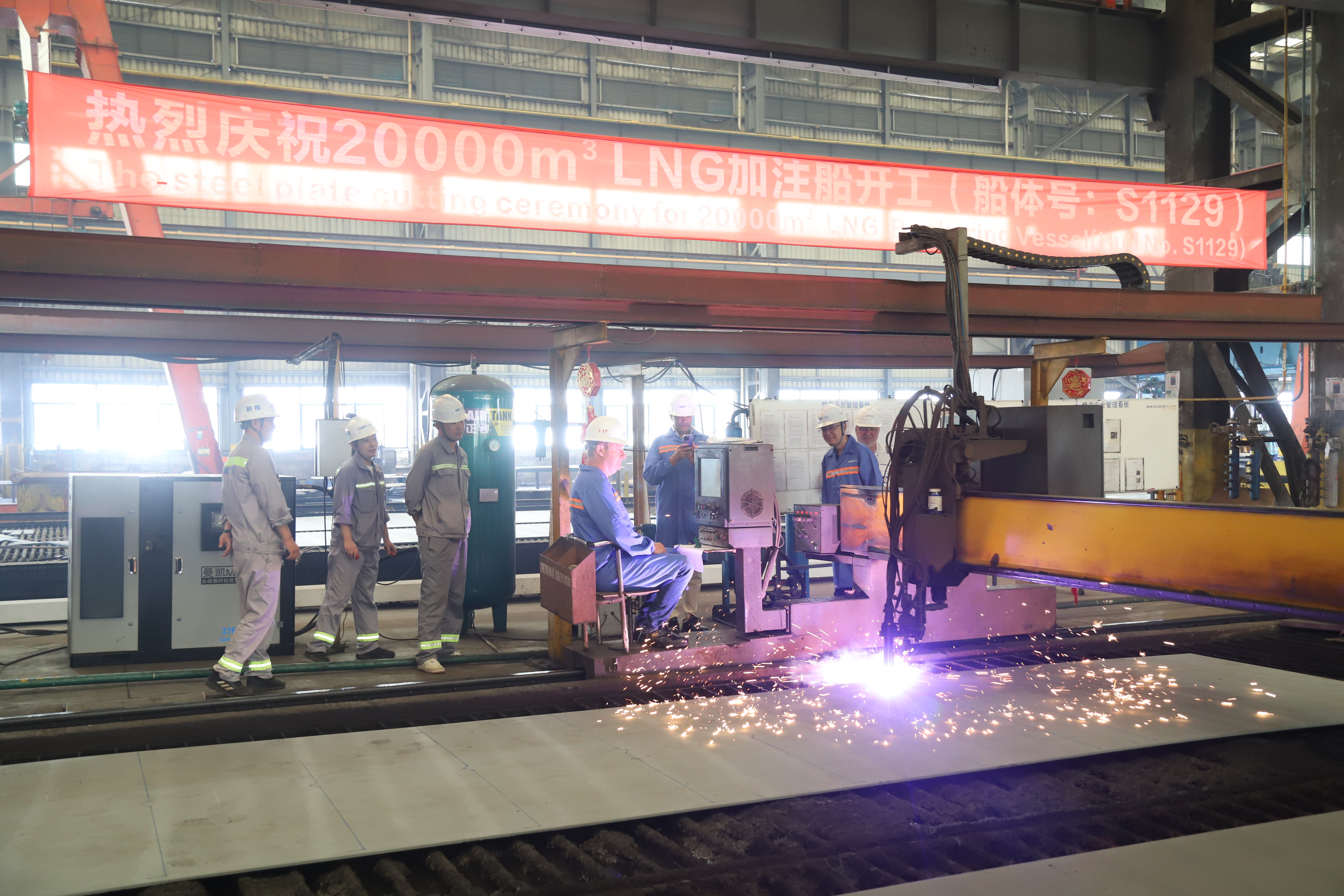 On September 23, the keel-laying ceremony for the 20,000m³ LNG bunkering vessel (Hull No.: S1129), built by Nantong CIMC Sinopacific Offshore & Engineering Co., Ltd. (hereinafter referred to as "CIMC SOE") for Somtralux SA, was held at the workshop of the west area. The ceremony was witnessed by Yves Pauwels, General Manager of shipowner Somtralux SA; Alan Delanoe, Group Technical & Operations Director; Marian Alexandru, Site Manager of supervision company EXMAR; representatives Zhan Dongliang and Li Jun from classification society DNV; Chen Bin, Deputy General Manager of CIMC SOE's Shipbuilding Business Division; Wen Zhengqing, Director of the Ship Marketing Department; Chen Rui, Assistant Director of the Quality Assurance Department; and other members of the company's project team.