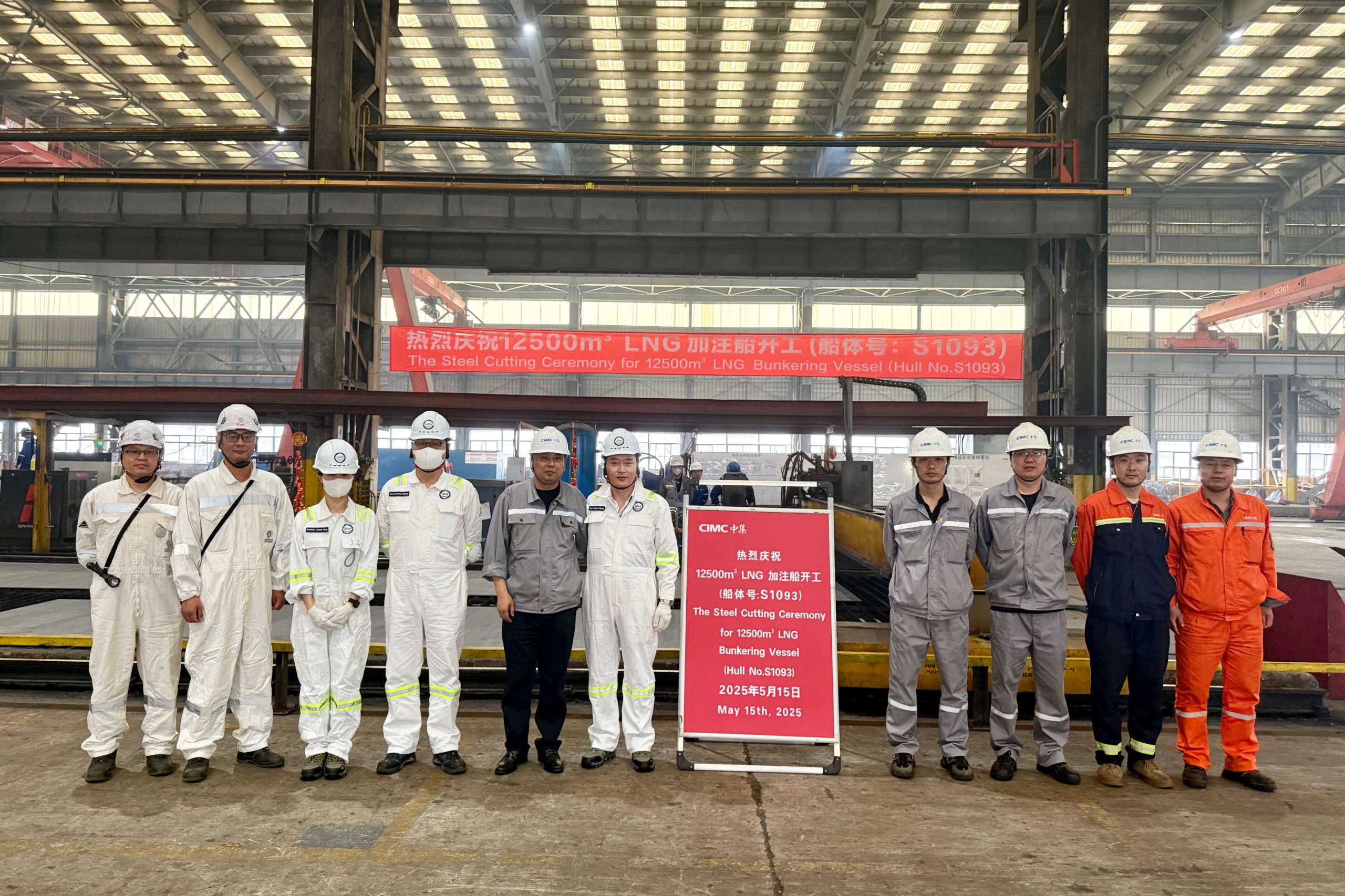 2025年5月15日,中集太平洋海工为Vitol International Shipping建造的12500立方米LNG加注船在西区制造部车间顺利开工
