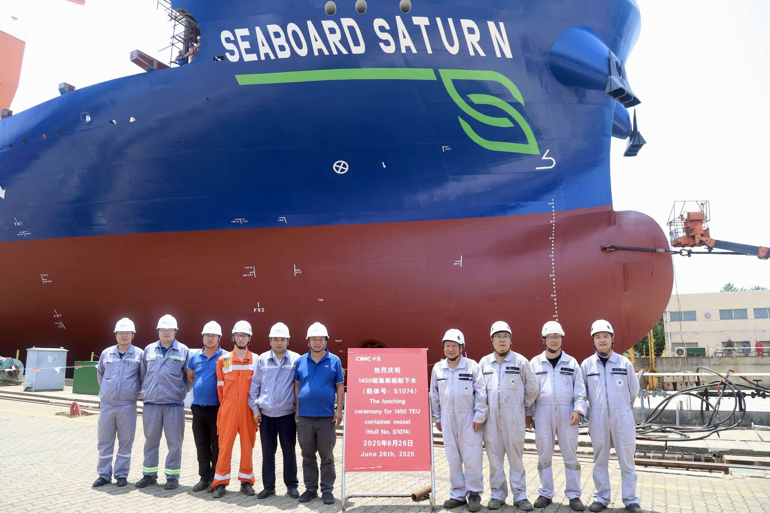 2025年6月26日,中集太平洋海工第二艘1450TEU双燃料集装箱船在西区2号船台顺利下水