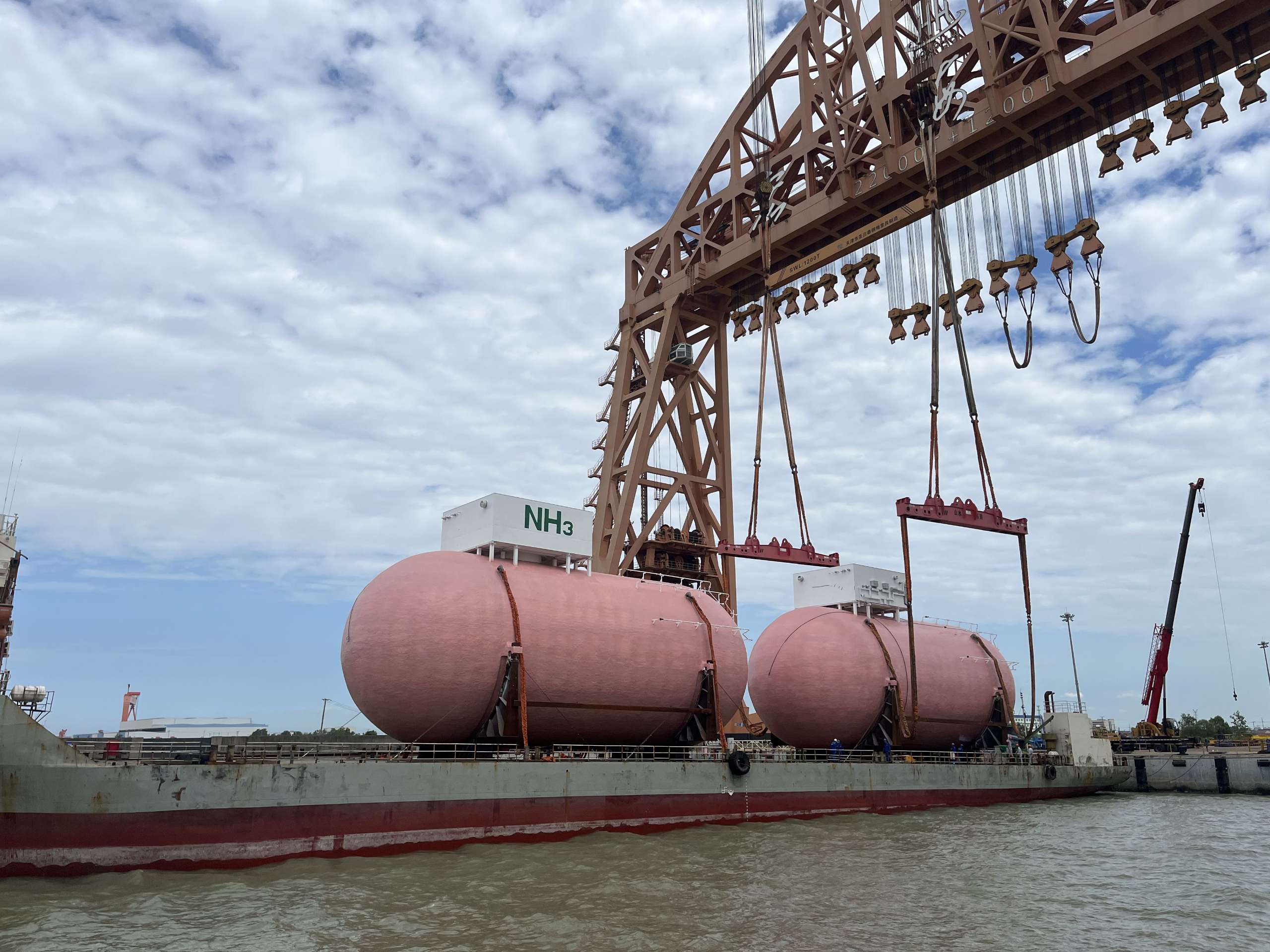2025年7月9日,中集太平洋海工为青岛双瑞和北海船厂承建的21万吨氨燃料动力散货船配套的全球首制3000立方米液氨燃料罐顺利装船发货