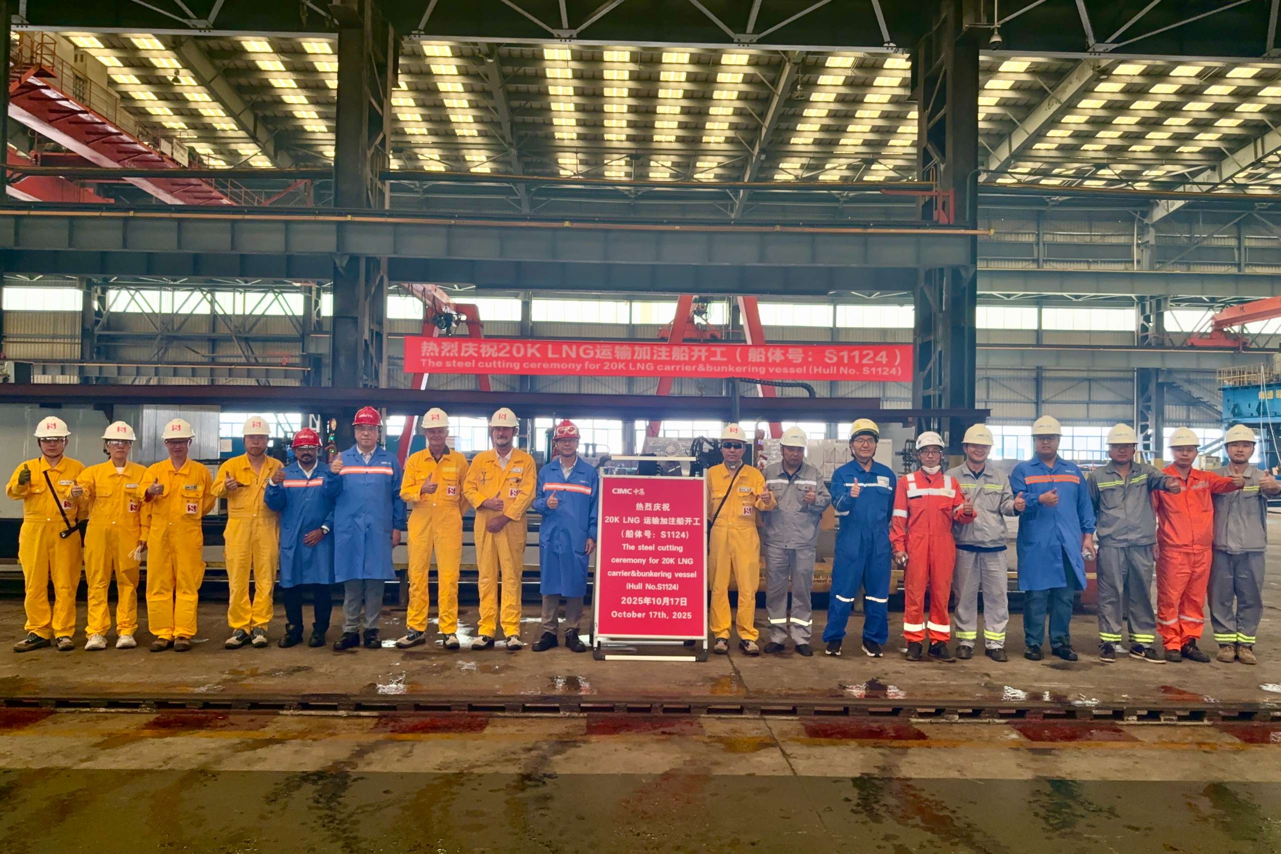 2025年10月17日,中集太平洋海工为Avenir LNG Limited公司建造的一艘20000立方米LNG运输加注船举行开工仪式