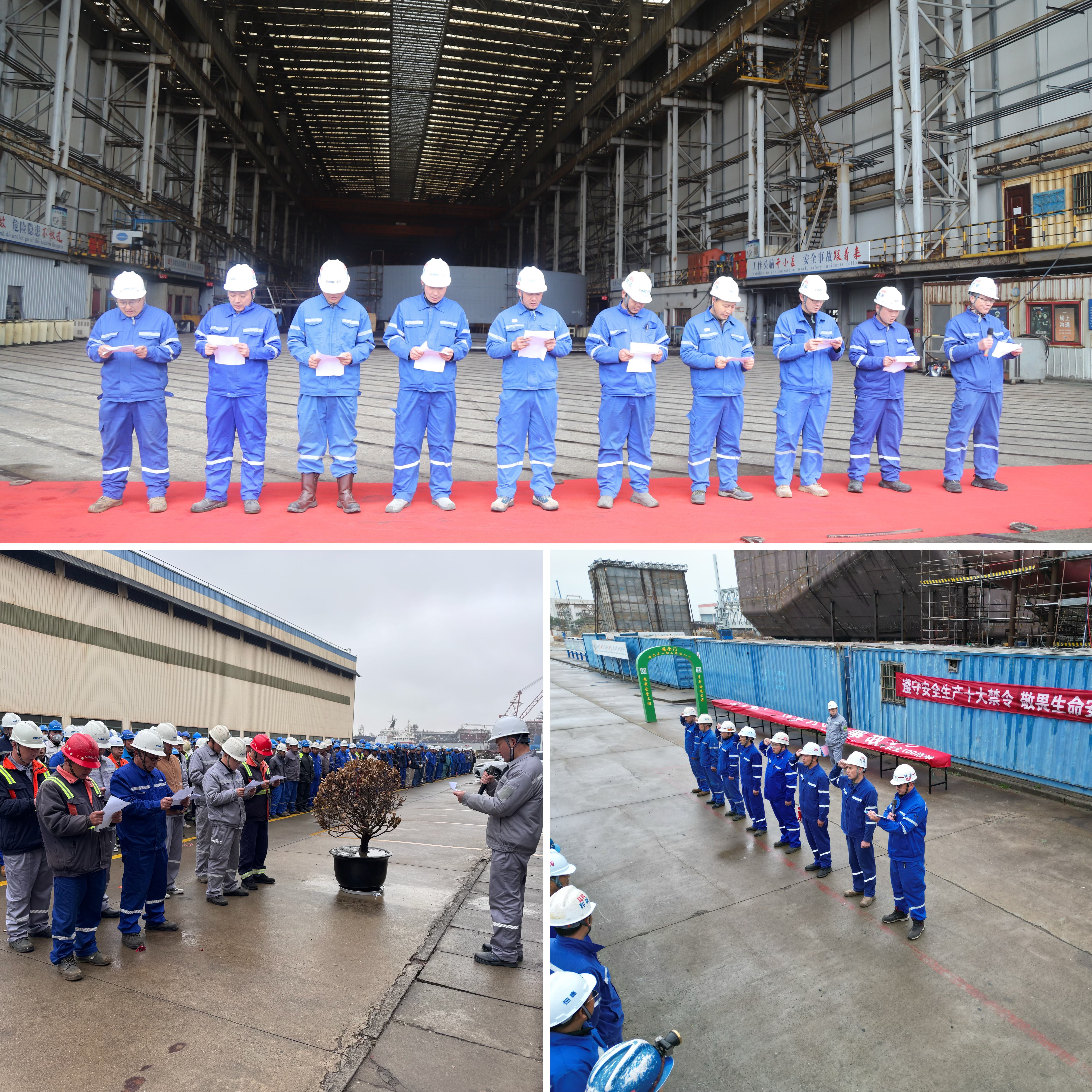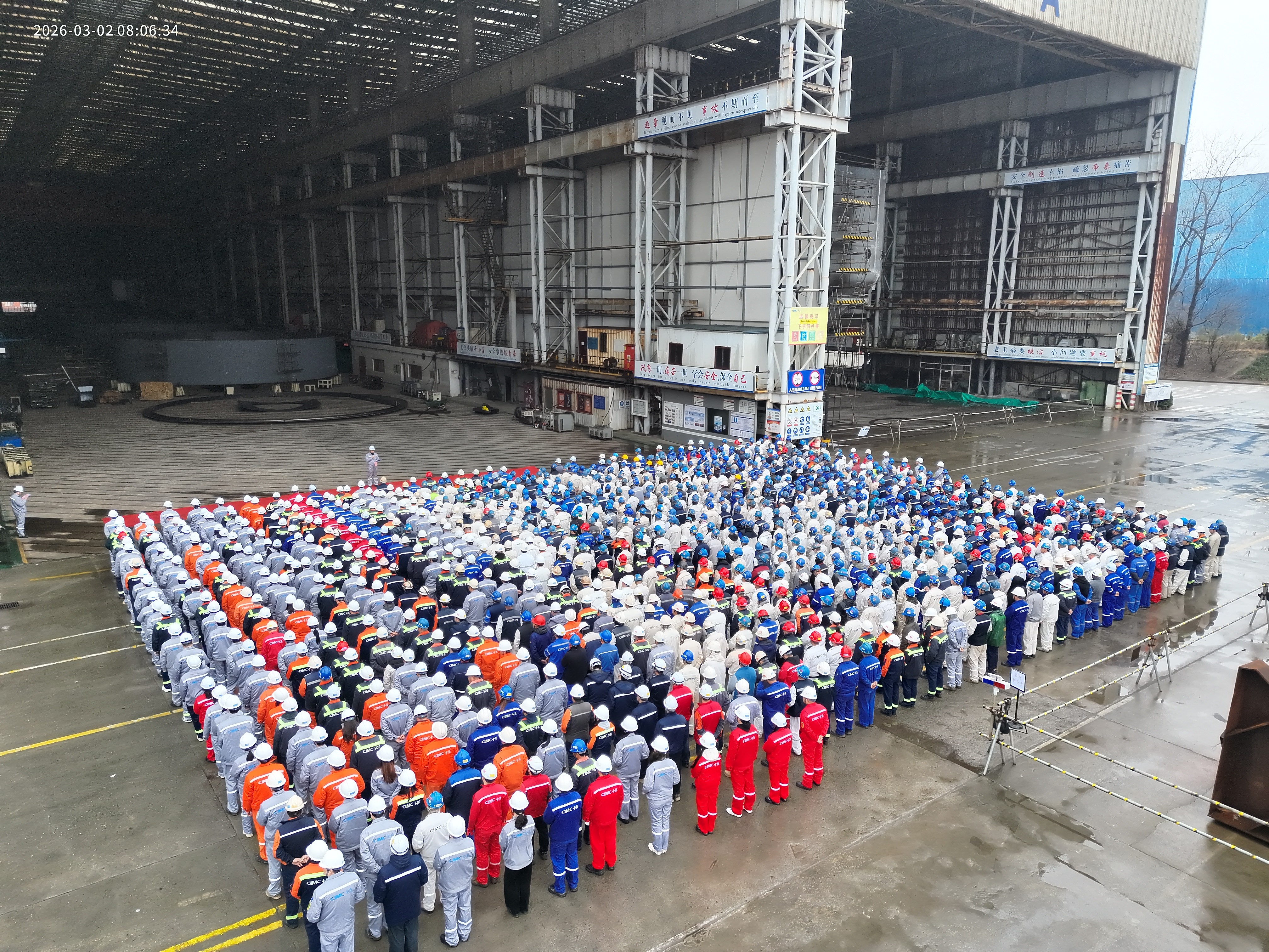 3月2日上午8时08分,南通中集太平洋海洋工程有限公司(以下简称“中集太平洋海工”)启东基地东区、西区及宏华同步举行 2026 年春节后 “安全 100” 活动。中集安瑞科副总裁兼中集太平洋海工总经理高文宝等公司领导、各部门长、全体本工及承包商员工共同参与活动。此外,金海基地也结合基地实际情况开展了“安全100”活动。