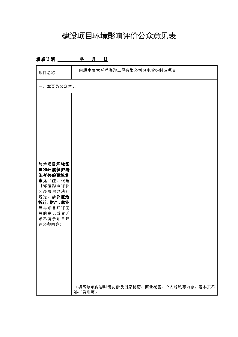 公示时间自公布日起10个工作日内。请公众在发表意见的同时尽量提供详尽的联系方式,邮件主题为风电管桩制造项目。