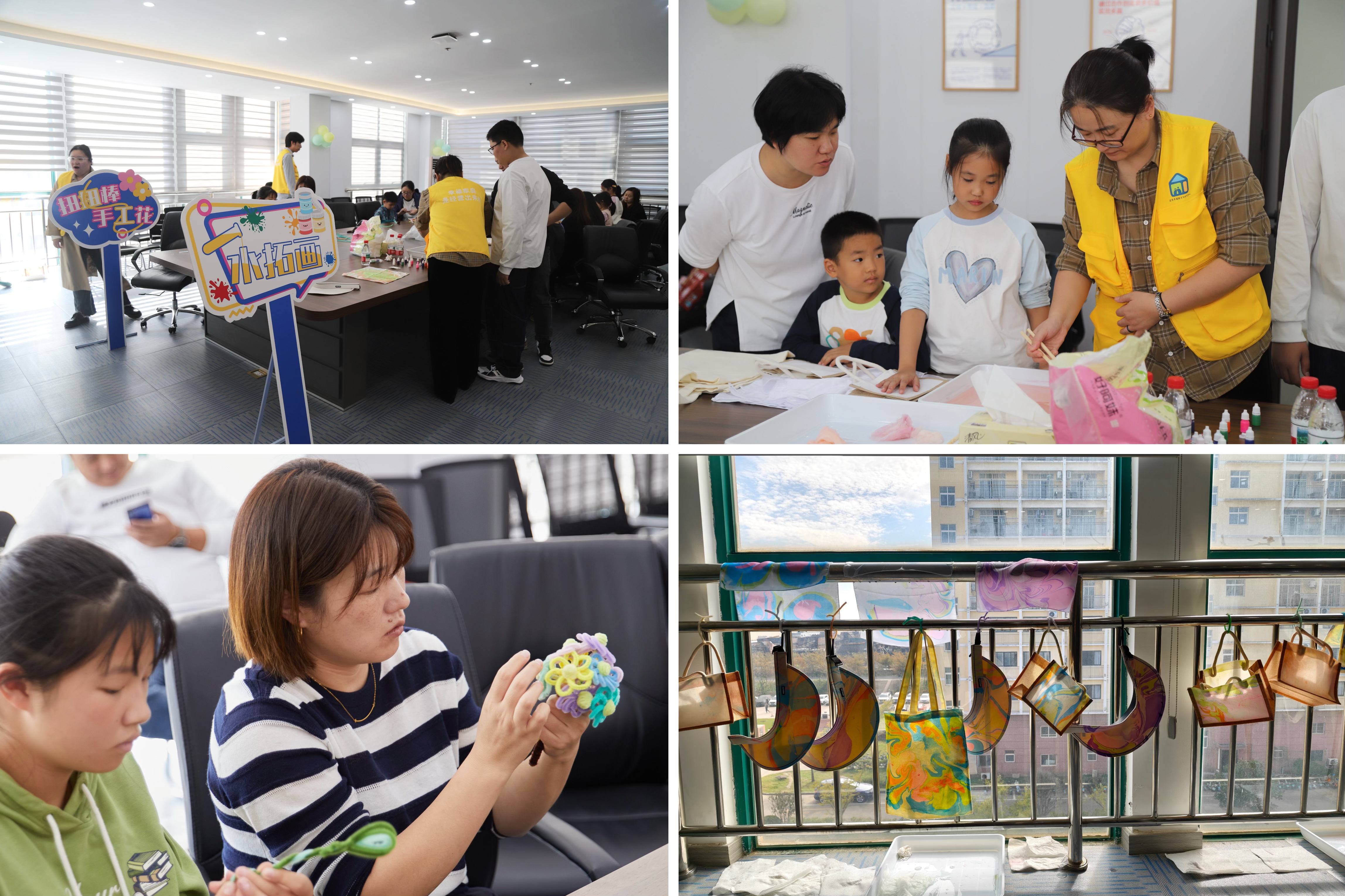 与游戏区的热烈形成对比的,是互动体验区的温馨与专注。在水拓画台前,大家围在一起,将颜料滴入水中,看着它们在水面晕染、开花,再用小棒子一勾一拉,独一无二的图案便定格在丝巾、帆布包或是帽子上;在扭扭棒手工花区域,五彩缤纷的扭棒在指尖缠绕、拼接,不一会儿,一朵朵充满想象力的花朵便“绽放”在大家手中,灿烂的笑脸与手中的花朵交相辉映。