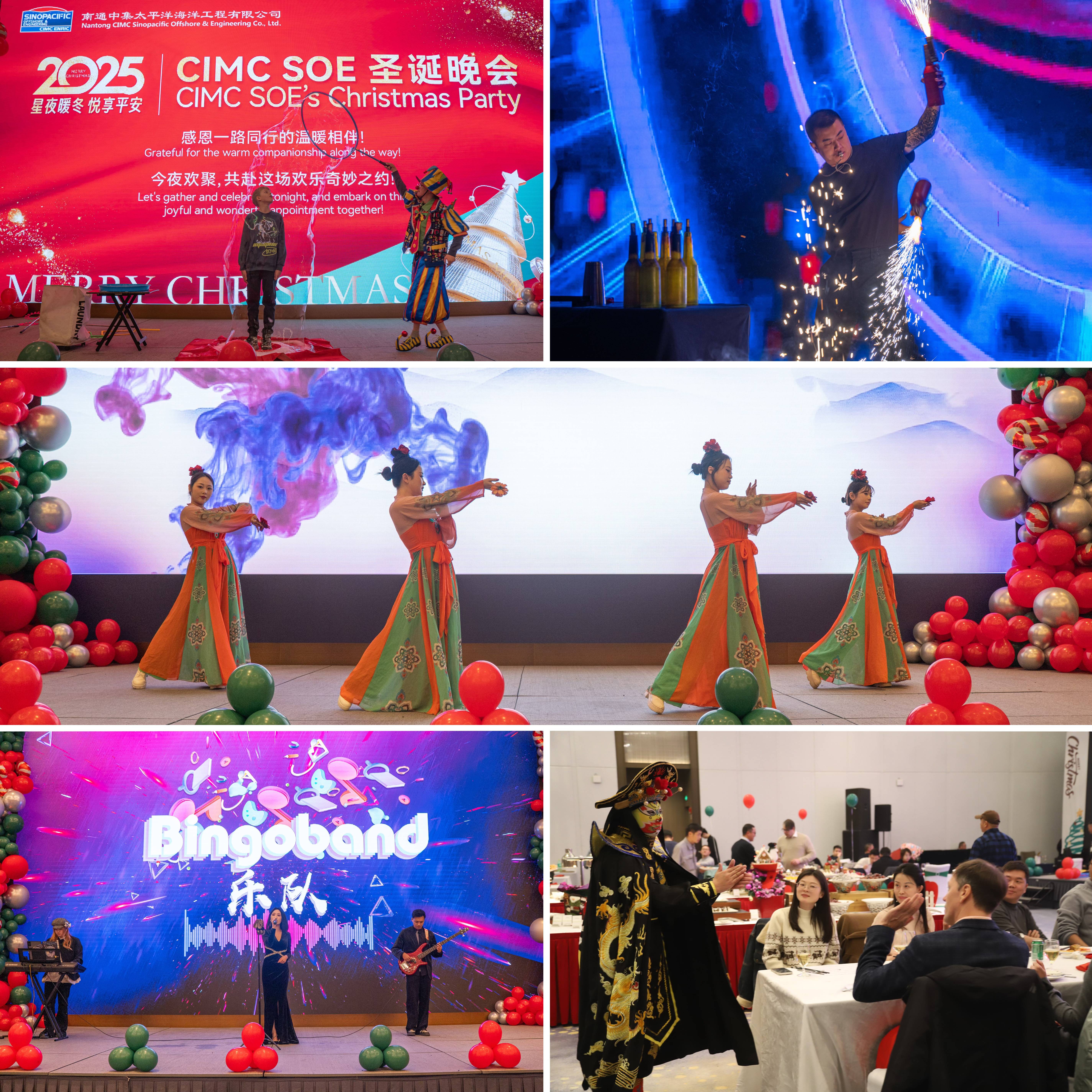 此外,动感十足的乐队演奏、酷炫惊艳的花样调酒、韵味十足的民族舞蹈、变幻莫测的川剧变脸以及童趣满满的小丑泡泡秀等节目轮番上演,多元的艺术形式与精彩的现场互动,为嘉宾们带来了一场全方位的视听盛宴,也让彼此在轻松愉悦的氛围中进一步加深了了解与信任。晚会在温馨的祝福声中步入尾声,嘉宾们举杯互祝圣诞快乐、新年顺遂,祝愿未来合作之路越走越宽、共赢之果越结越丰。此次圣诞平安夜晚会,不仅是一场节日的欢聚,更是中集太平洋海工对合作伙伴长期以来支持与信赖的真诚回馈,是深化情感联结、凝聚合作共识的重要见证。