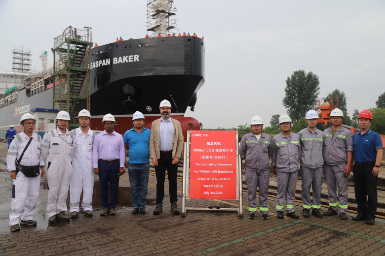At 7:08 am on July 1st,Nantong CIMC Sinopacific Offshore & Engineering Co., Ltd. (hereafter referred to as "CIMC SOE"), successfully launched the third of three 7,600 cubic meter LNG bunkering vessels (S1067) it is building for Seaspan ULC of Canada (hereafter referred to as "Seaspan") at its West Area Slipway No.2. The launching ceremony was witnessed by Harly Penner, Vice President of Seaspan Energy Group, Moka Adinarayana, Technical Director of SMC, and members of the supervision team, Chen Xujian from Bureau Veritas, Chen Bin, Deputy General Manager of CIMC SOE's Shipbuilding Division, and members of the company's project team.
