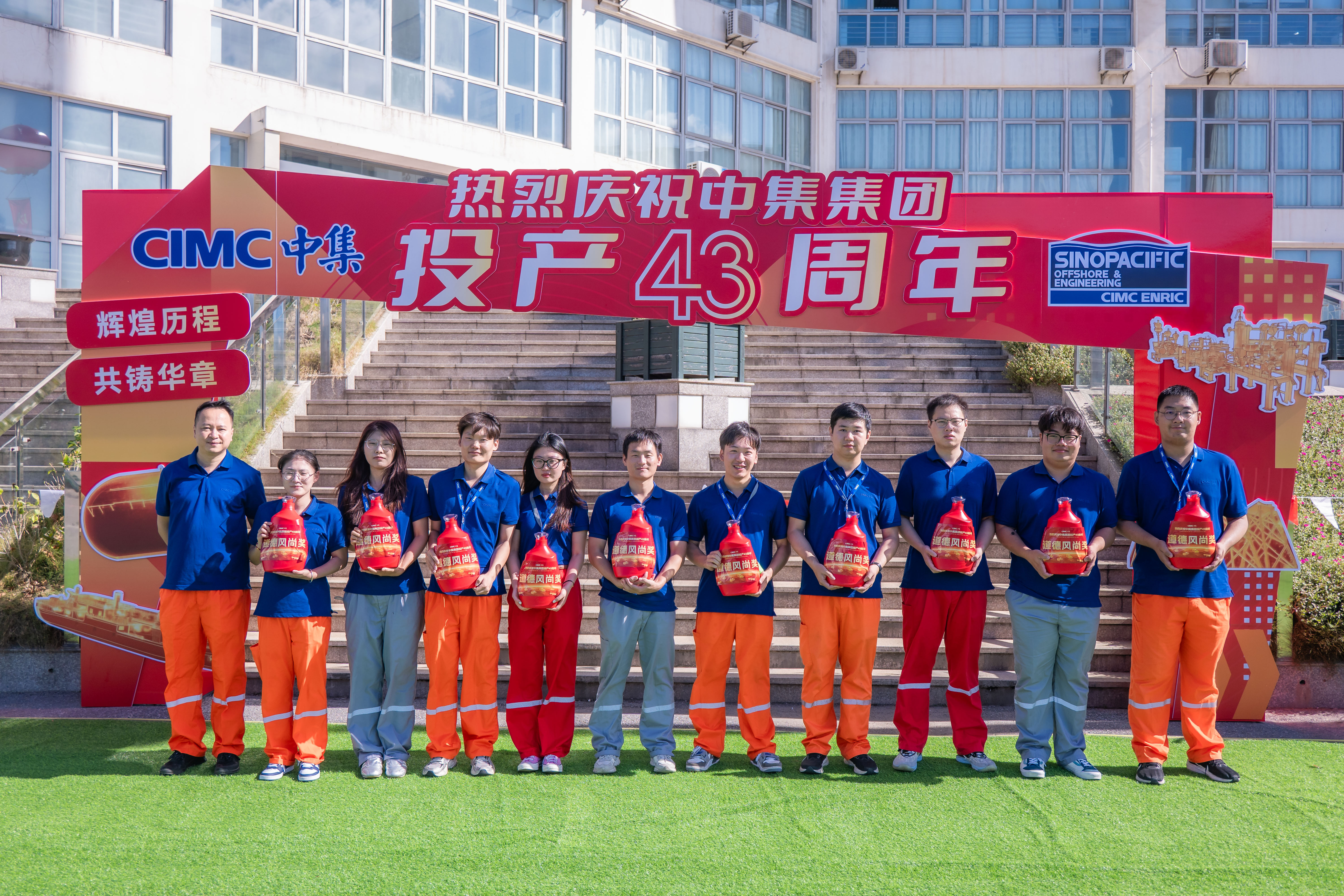 On September 22, Nantong CIMC Sinopacific Offshore & Engineering Co., Ltd. (hereinafter referred to as "CIMC SOE" or "the Company") held a series of meaningful and dynamic events to warmly celebrate the 43rd anniversary of CIMC Group's operation. All employees gathered in a festive and vibrant atmosphere to build consensus and draw strength, collectively applauding the Group's 43-year journey in industrial development and charging up for the Company's future.