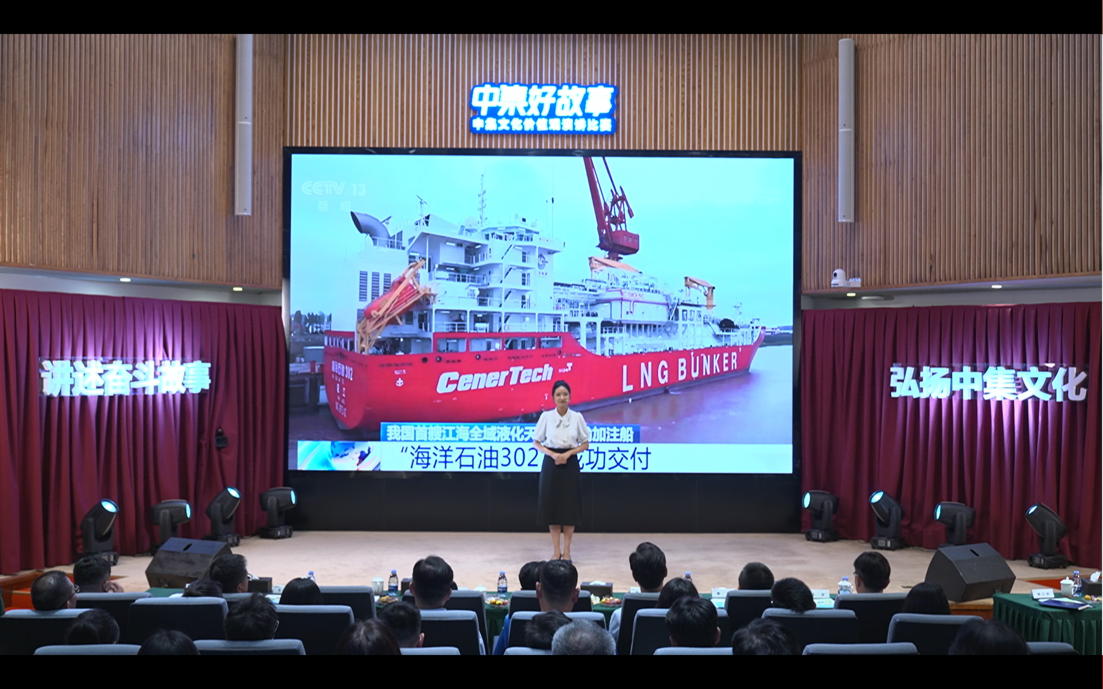 In the evening, the "CIMC Good Story" speech contest perfectly concluded the anniversary celebrations. The speech contest on CIMC's cultural values was conducted in a combined online and offline format. The Company organized the management team, key cadres, and new graduate trainees to watch collectively. Contestants from various levels of the Group competed on the same stage, sharing heartfelt stories of dedication around them. Among them, Ji Na from the Company's Office successfully advanced to the finals after several rounds of intense competition and took to the Group stage to tell the story of the "Offshore Oil 302". One vivid and genuine example after another eloquently conveyed the core cultural values of "Innovation, Responsibility, and Collaboration," deeply moving both live and online audiences and further strengthening everyone's sense of identification with and belonging to the CIMC culture.