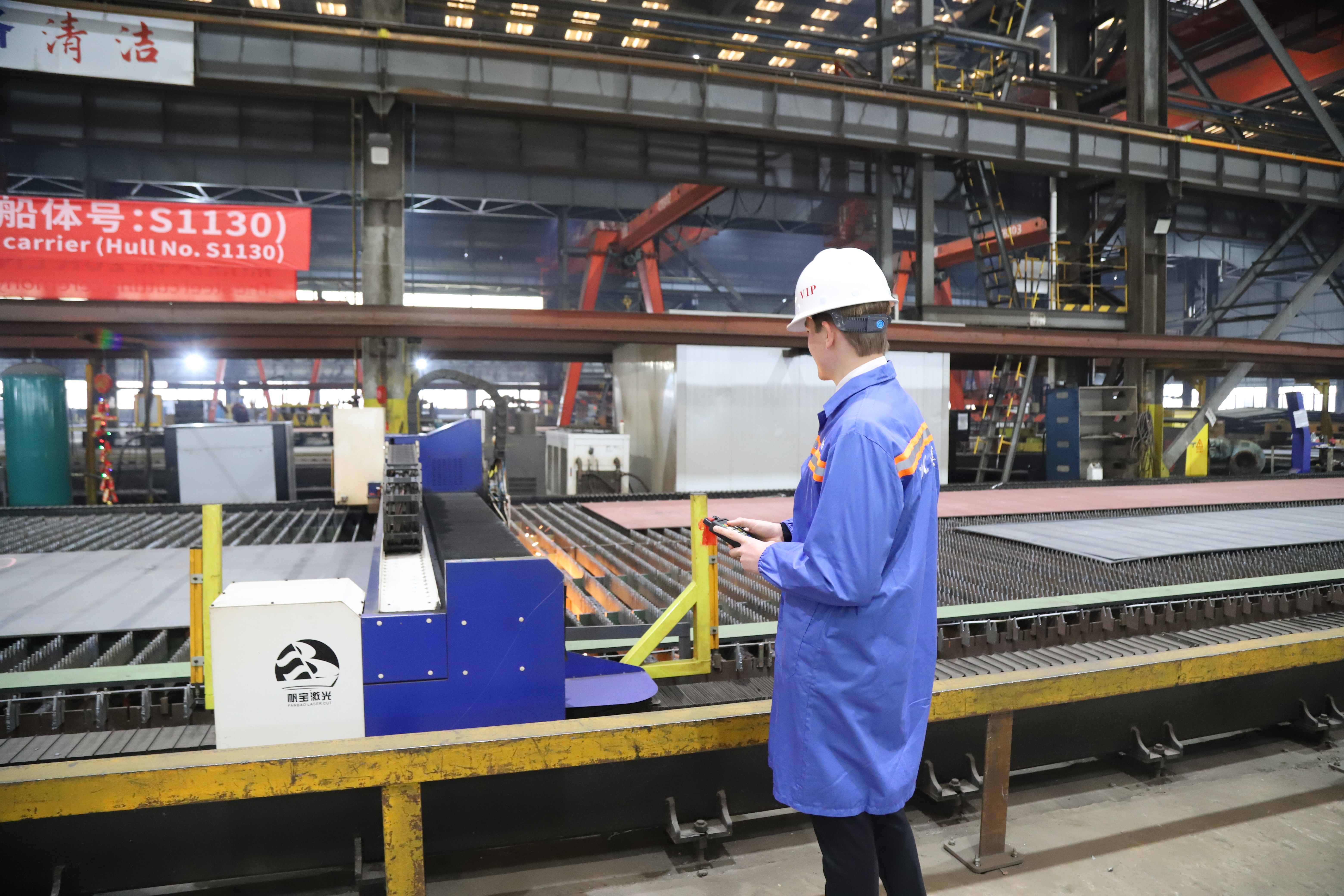 On January 30, the construction commencement ceremony for the 20,000-cubic-meter LNG bunker and carrier vessel (Hull No.: S1130), built by Nantong CIMC Sinopacific Offshore & Engineering Co., Ltd. (hereinafter "CIMC SOE") for Somtralux SA, was held at the West Yard. The event was witnessed by Yves Pauwels, General Manager of shipowner Somtralux SA; Marian Alexandru, Site Manager of supervision company EXMAR; representatives Zhan Dongliang and Li Jun from classification society DNV; Wen Zhengqing, Director of the Ship Marketing Department; Shen Jiaming, Deputy Director; and members of the company's project team.